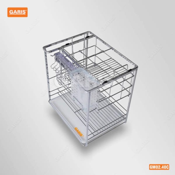 Đặc điểm: Duy nhất tại Việt Nam có chống rung 2 bên, rổ để gia vị có thể nhấc ra dễ dàng, phụ kiện liên kết rổ và cánh tủ bằng inox 304.